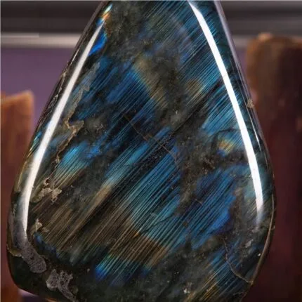 Cette pierre est connue pour son jeu de couleurs éblouissant, qui semble émaner de l’intérieur de la pierre elle-même. Ses reflets sont chatoyants et vont du bleu profond au vert émeraude, en passant par le jaune doré et le violet. Ce qui rend vraiment la labradorite spéciale, c’est son phénomène optique fascinant appelé « labradorescence ». Lorsqu’elle est exposée à la lumière, des éclairs colorés semblent danser à la surface de la pierre, créant une expérience visuelle presque magique.